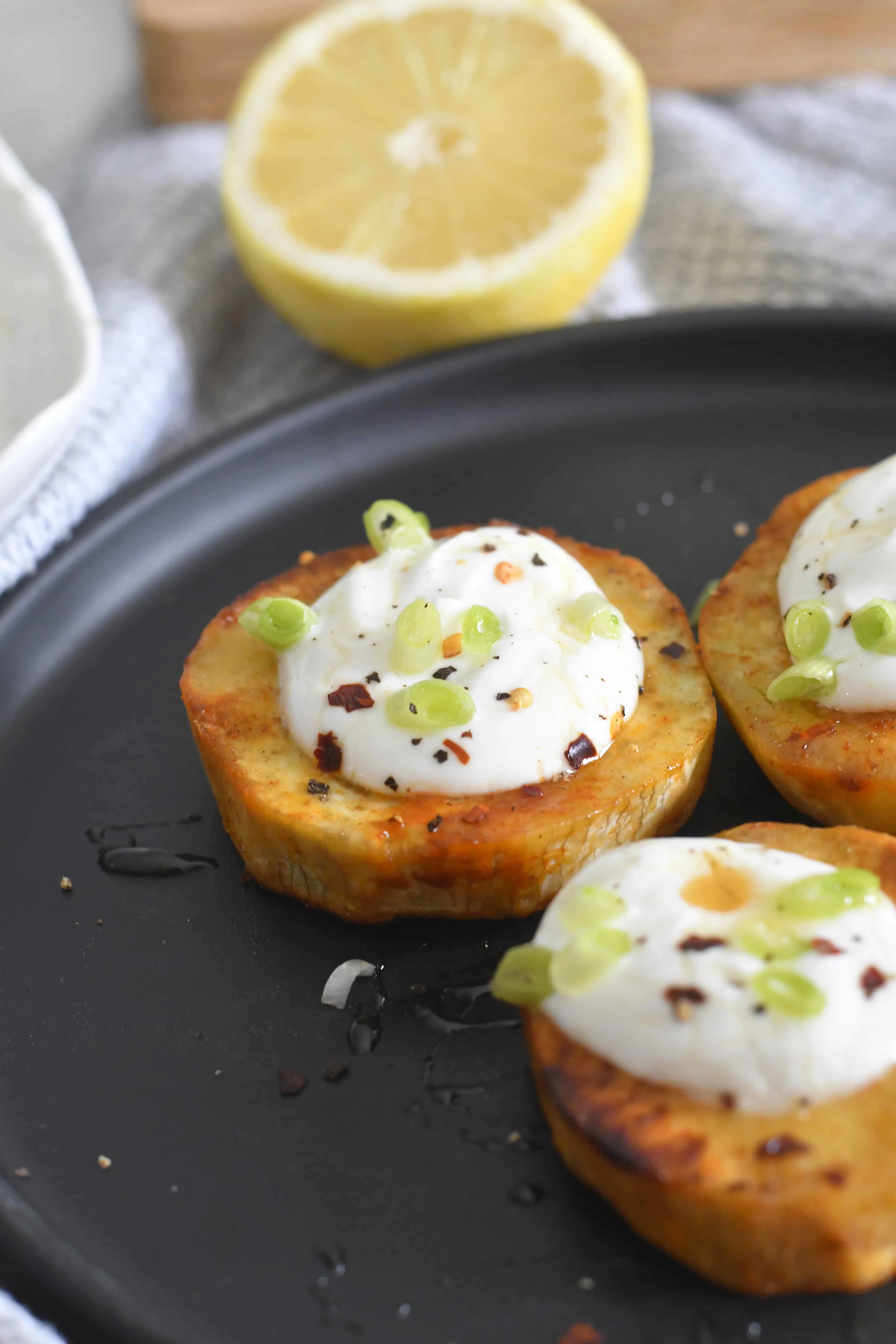 Roasted Japanese Sweet Potato Rounds with Zesty Yogurt